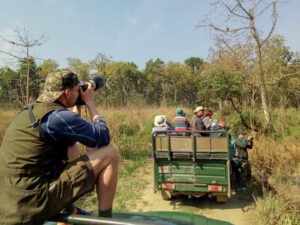 Our journey into the heart of Chitwan National Park was truly unforgettable. As we ventured deep into the jungle on a thrilling jungle walk, we were surrounded by breathtaking landscapes—lush forests, open grasslands, and the untouched beauty of Nepal’s wilderness.